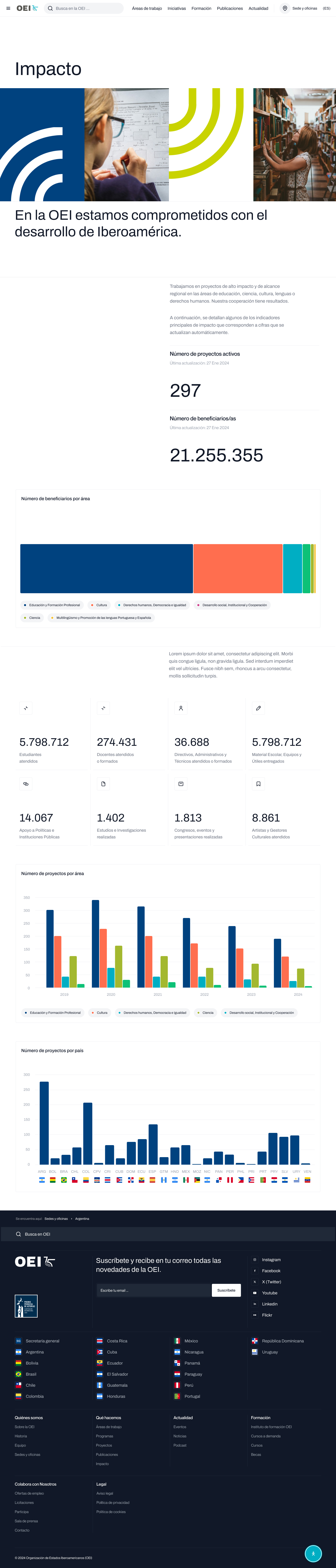 La OEI opera en toda Iberoamérica coordinando programas de cooperación en educación, ciencia y cultura. El reto era convertir una web institucional compleja en una plataforma moderna, accesible y escalable — capaz de servir a audiencias muy distintas con necesidades igual de distintas.