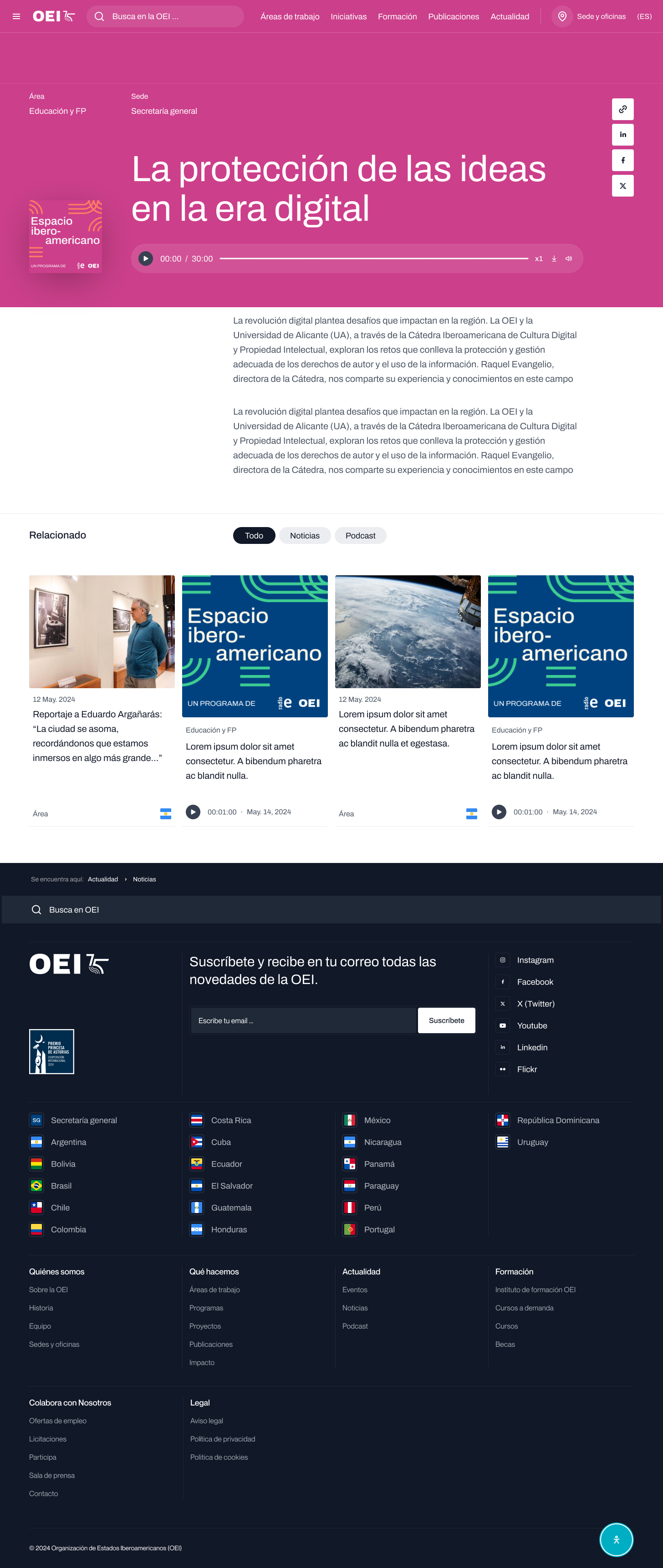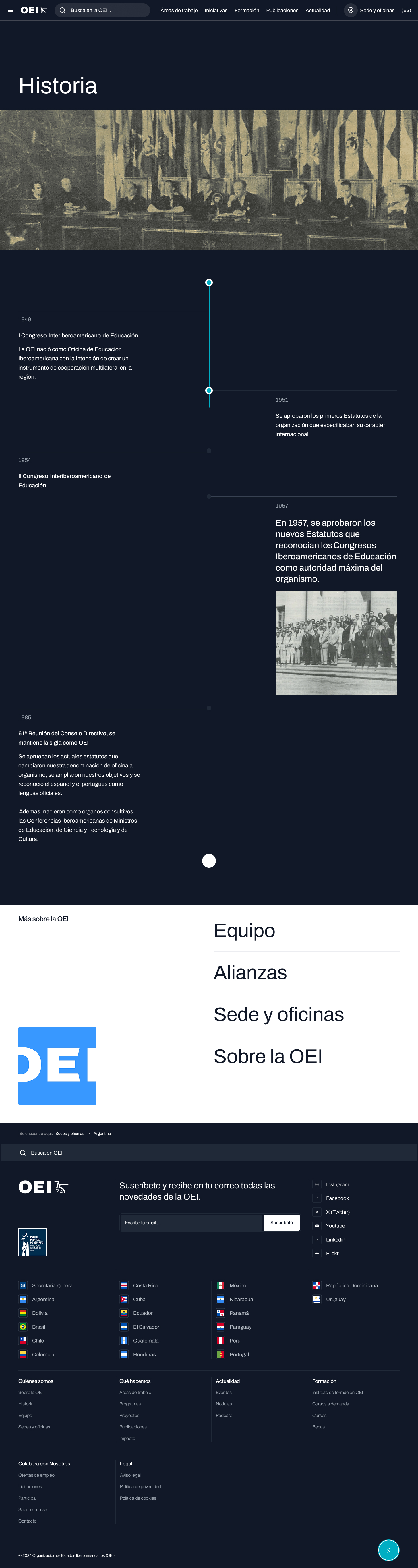 Rediseñé la arquitectura de información completa e implementé una navegación dual que separa el contenido institucional del contenido participativo. Construí un buscador avanzado con etiquetado inteligente y un design system modular con componentes reutilizables. El resultado es un entorno digital coherente que refuerza el posicionamiento de la OEI como agente clave en cooperación internacional — y que seguimos evolucionando.